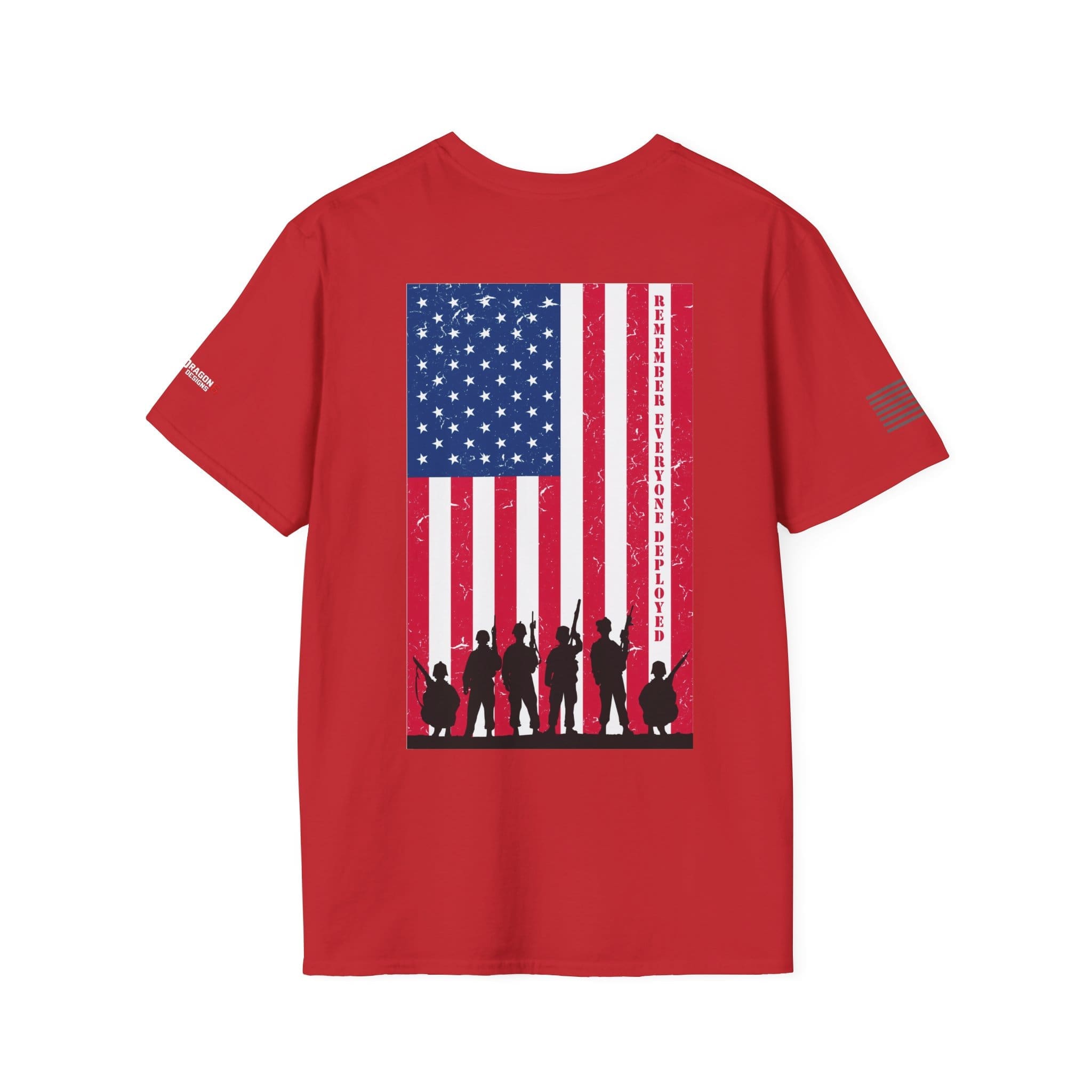 Our Remember Everyone Deployed lightweight crew tee carries a quiet, steady kind of pride. If you’re searching for a Remember Everyone Deployed T-Shirt — American Flag Valor Tee, this one is crafted with meaningful details and comfort in mind. A bold flag graphic on the back stands tall behind a line of silhouetted service members — simple, respectful, and built for everyday wear. The soft, ring-spun cotton feels broken-in from the first wear, while the clean cut and tubular knit keep lines neat and comfortable. Subtle sleeve details echo the main image without shouting; wear it for long summer drives, backyard barbecues, or low-key gatherings where meaning matters more than flash. It settles into your rotation and becomes one of those shirts you reach for when you want to show support without saying much at all.
