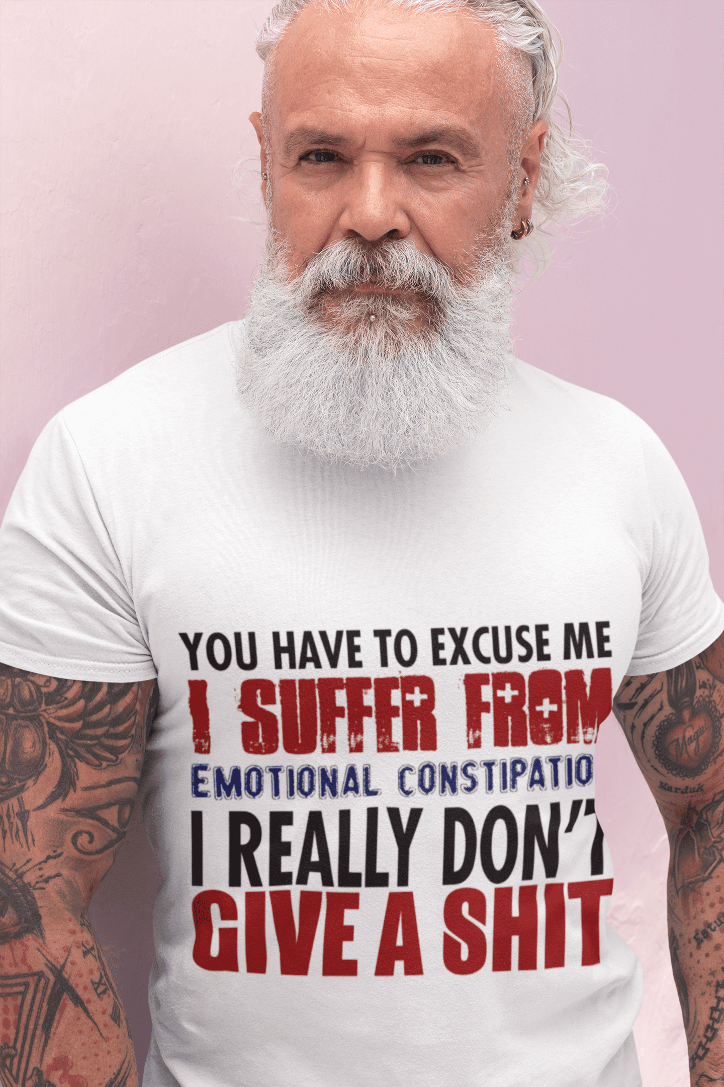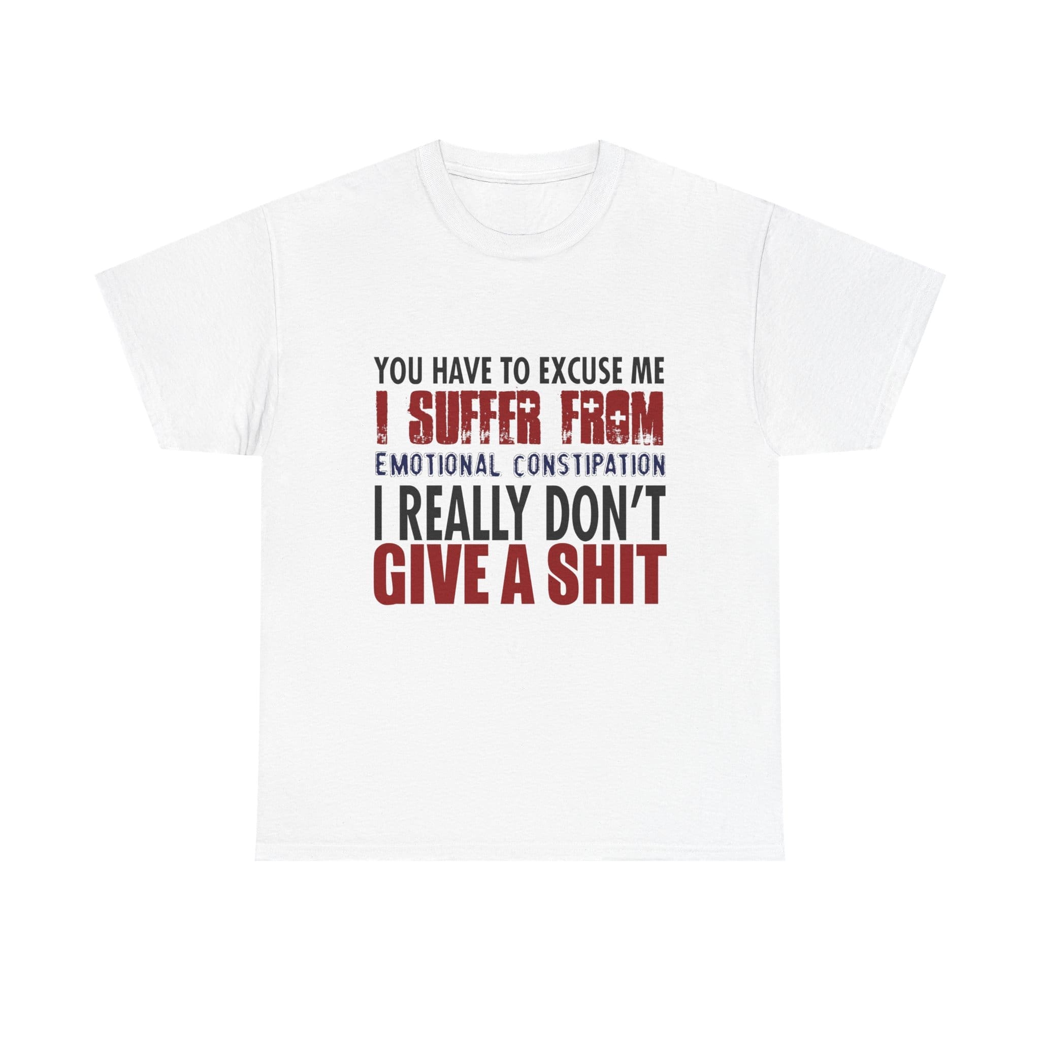 From our SNARKY COMMENTS collection comes our unique You Have To Excuse Me I Suffer From I Don’t Give a Shit Unisex Heavy Cotton Tee. This t-shirt is sure to please and the basic staple of any wardrobe. It is the foundation upon which casual fashion grows. The specially spun fibers provide a smooth surface for premium printing vividity and sharpness. No side seams mean there are no itchy interruptions under the arms. The shoulders have tape for improved durability.